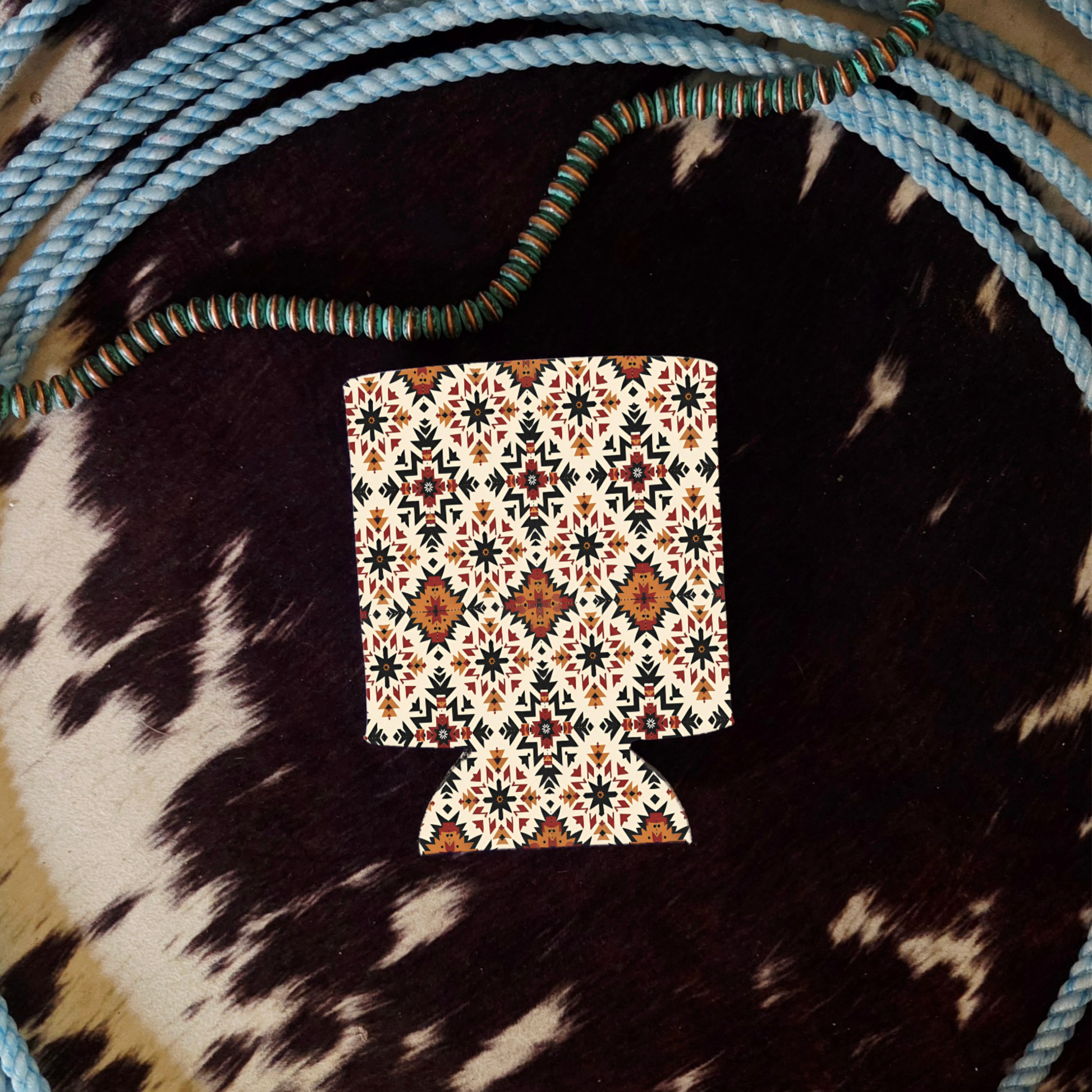 Bold, rugged, and full of Western flair — the Amarillo by Morning can cooler is made for those who love a little rodeo in their style. Featuring a warm desert-inspired Aztec pattern with deep rust, tan, and black tones, it’s a true nod to Texas roots and cowboy culture.