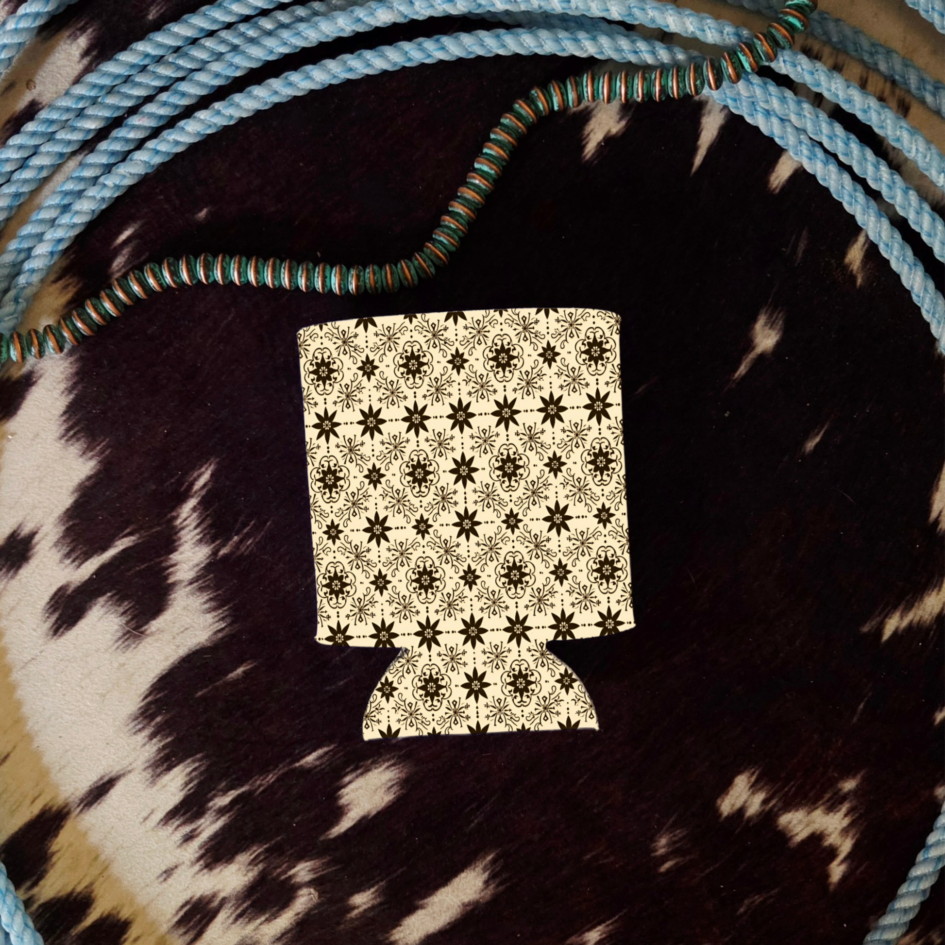 Classic, clean, and country to the core — the Prairie Mornin’ can cooler brings vintage Western charm with its black and cream tile-inspired pattern. Simple yet eye-catching, it’s the perfect mix of rustic tradition and modern cowboy style.