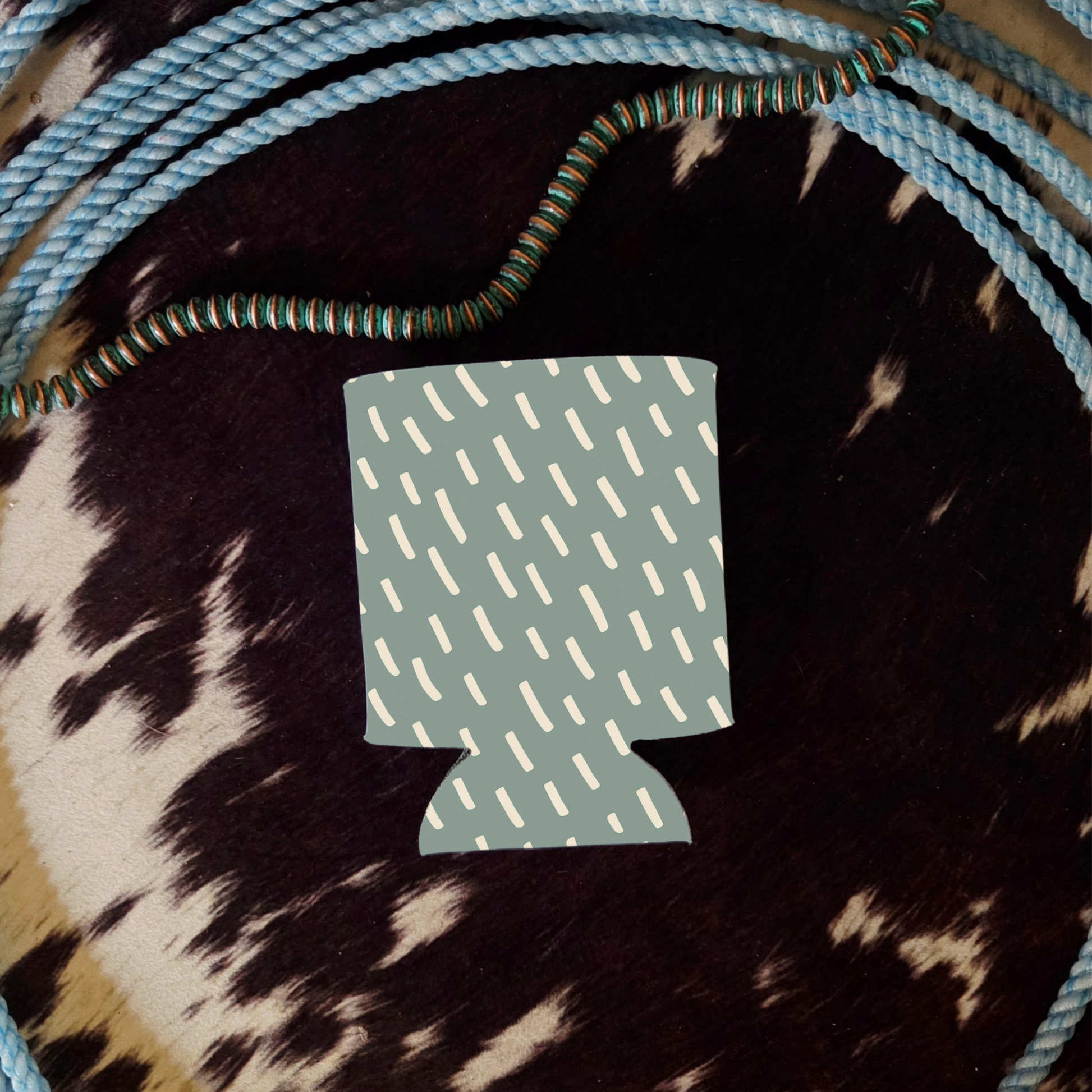 Cool, calm, and effortlessly Western β the Stillwater can cooler brings soft sage tones with a minimal cream dash pattern that feels like ripples across a quiet pond. Itβs the perfect mix of subtle and stylish for your everyday sips.